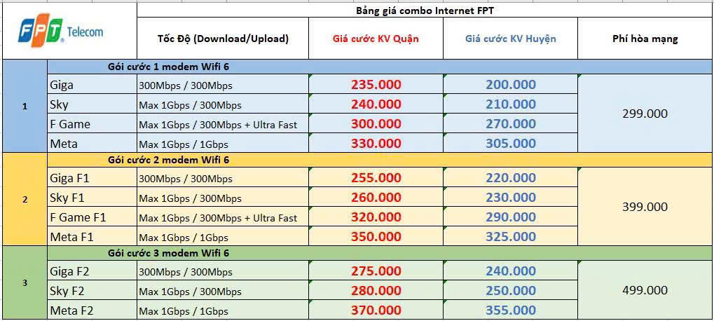 I.Bảng Giá Gói Cước Internet FPT Dành Cho Cá Nhân, Gia Đình, Sinh Viên